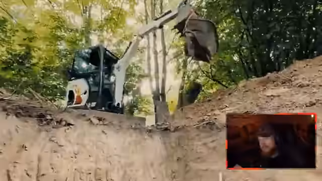 00:41:21Das ausgehobene Loch für den Bunker wird auf seine endgültigen Maße von drei mal zwei Metern erweitert. Anschließend wird ein längerer, schräger Schacht als Eingang gebaut, um den Transport der Vorräte zu erleichtern, anstatt den beengten Weg über eine Leiter zu wählen. Nachdem der Boden planiert und eine Stahlfolie als Isolationsschicht eingebracht wurde, beginnen die Arbeiten an der Einrichtung des Bunkers. Die Protagonisten planen, den Raum komplett mit Stahlplatten auszukleiden und ihn dicht zu verschweißen, um ihn langlebig und wasserdicht zu machen, als Vorbild dient ihnen das Bunkerprojekt von Colin Furze.