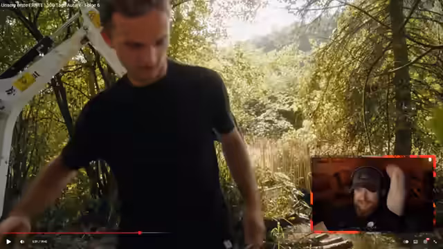 00:35:21In der fünften Folge des Projekts rücken die Protagonisten den Bau eines unterirdischen Bunkers in den Mittelpunkt, der als Lager und zusätzlicher Schutzraum dienen soll. Hierfür wird zunächst ein großes Loch mit dem Bagger ausgehoben. Gleichzeitig wird das benötchte Holz für ein Blockhaus geliefert, dessen Größe jedoch als kritisch eingeschätzt wird, da es nur Platz für ein sehr enges Doppelbett bieten würde. Parallel werden bereits erste Vorbereitungen für die Verarbeitung der gesammelten Brombeeren getroffen, indem diese auf einem Feuer zu Marmelade gekocht werden, um sie haltbar zu machen und die Energiezufuhr zu verbessern.