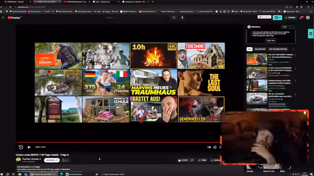 00:02:39Der Streamer reagiert auf neue Folgen des '100 Tage Autark Projekts' der Real-Life-Guides. Die Protagonisten berichten von Rückschlägen: Wildschweine haben den Zaun zerstört und Schafe sind eingedrungen, die daraufhin einen Großteil der Tomaten-, Erbsen- und Maispflanzen zerstört haben. Dies ist besonders schlimm, da Tomaten und Erbsen wichtige Vitamin- und Eiweißlieferanten sind, während Mais als kohlenhydratreiche Nahrung gänzlich ausfällt. Das Projekt kämpft mit dem Verlust eines signifikanten Teils der geplanten Ernte.