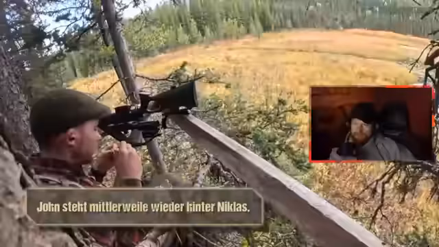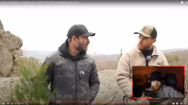 01:01:35Die Gruppe beginnt nun mit der konkreten Jagdvorbereitung. Milan und der Streamer erkunden das Gelände auf der Suche nach Spuren und finden vielversprechende Anzeichen von Wild, wie Elchspuren. Gleichzeitig wird die wichtigste Jagdwaffe getestet, um sicherzustellen, dass sie nach den Stürzen der letzten Tage noch einwandfrei funktioniert. Ein gezielter Kontrollschuss bestätigt die Zuverlässigkeit von Waffe und Zielfernrohr. Dies ist die Grundlage für das nun bevorstehende Jagdabenteuer.