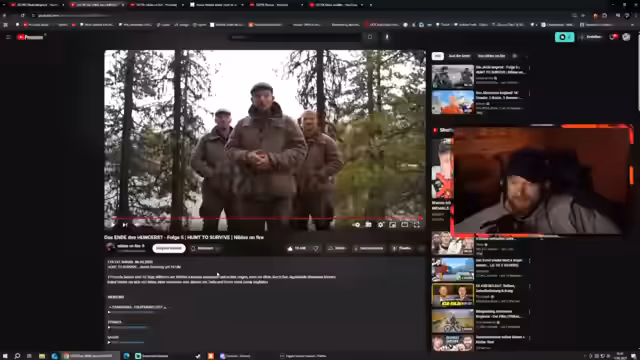 00:01:23Zuerst gibt es ein Update zum Gesundheitszustand des Streamers. Die Genesung verläuft sehr schleppend, und es gab gestern einen kleinen Rückfall, sodass er wieder nicht alles verträgt. Hauptinhalt des Streams ist die Reaktion auf Folge 5 der Serie "Hunt to Survive". Die Folge verspricht besonders spannend zu sein, da die Situation sich komplett geändert hat: Das Camp ist im See verloren, und Niklas ist über Bord gefallen. Es geht nun um die Frage, ob die Gruppe in dieser neuen Notlage überleben wird.