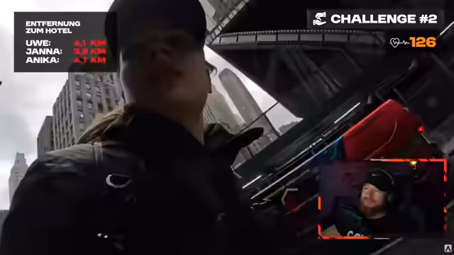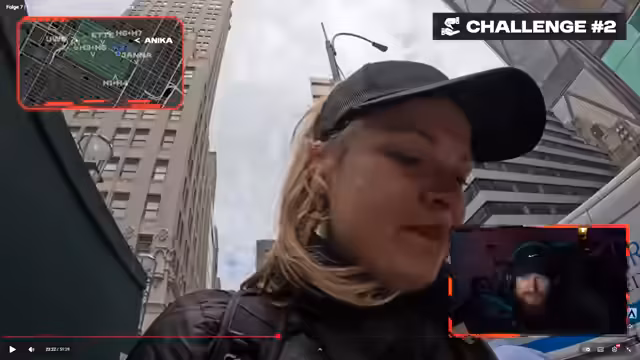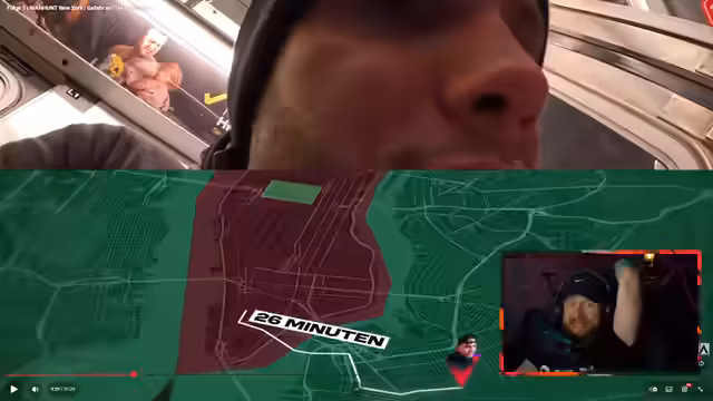 01:29:54Ein Spieler plant, an der Challenge teilzunehmen, indem er sich verkleidet. Er will seinen Rucksack in einer großen Tasche bei Marshalls verstauen und sich dann in einem Bauarbeiterkostüm, bestehend aus Helm und Warnweste, unauffällig am Times Square bewegen. Die Kontaktpersonen werden als Ferhat und Marco vermutet, eventuell auch Fabio oder sogar der Spieler selbst. Er erhält alle fünf Minuten einen Ping. Es wird über die Effektivität der Verkleidung diskutiert, insbesondere die GoPro-Platzierung und die Notwendigkeit, den Rucksack zu verbergen. Der Spieler ist begeistert von seiner Verkleidung, die er als 'Weltklasse' bezeichnet und die seine Laune erheblich verbessert. Er fühlt sich integriert und motiviert für die Challenge. Zusätzlich plant er, GPS-Tracker an den Hunter-Vans anzubringen, um deren Bewegungen zu verfolgen. Er hatte bereits Glück, als er durch einen Joker die Standorte aller sieben Hunter im Headquarter in Hoboken, Jersey City, erfahren hat.