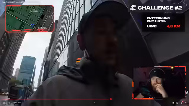 02:46:12Uwe plant, schnell und unauffällig ein Fahrrad zu besorgen, um keinen Verdacht zu erregen. Er fragt Passanten nach einem günstigen, gebrauchten Fahrrad und wird zu einem Fahrradgeschäft in Fulton und Atlantic verwiesen. Dort findet er ein Geschäft mit 3573 Bewertungen und einer 5,0-Sterne-Bewertung, das als "Beste Schrottifront New York" bezeichnet wird. Uwe erhält ein Fahrrad geschenkt, obwohl das Ausleihen oder Kaufen von Gegenständen laut Regeln nicht erlaubt ist. Das Fahrrad ist verrostet und hat eine kaputte Bremse, aber es fährt. Der Streamer ist überrascht über den Erfolg von Uwes Suche und sieht darin eine mögliche Veränderung der Dynamik der Challenge. Währenddessen bemerkt Uwe, dass sein blaues Outfit ihn der Gang Crips zuordnen könnte, was zu einer Diskussion über die Kleiderwahl und mögliche Missverständnisse führt. Er überlegt, seine blaue Hose auszuziehen, da sie als zu auffällig empfunden wird, während die blaue Weste als weniger problematisch angesehen wird. Die Challenge beginnt offiziell um 13 Uhr, und es wird diskutiert, ob ein Agent, der vorab in die Zone kommt, gesehen werden darf.