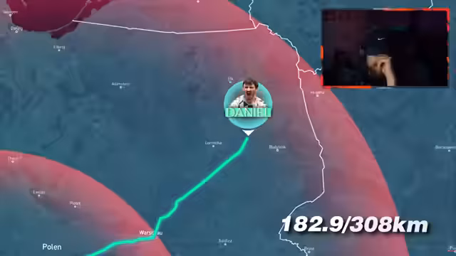 02:28:30Während der Fahrt durch Polen kämpft der Streamer mit Erschöpfung und Hitze. Er macht einen kurzen Stopp in einem Aldi, holt sich aber nur ungeeignete Snacks und vergisst das Wichtigste, Wasser. Die psychische Belastung steigt, die Gedanken werden unkoordiniert und die Aussicht auf einen kurzen Schlaf ist verlockend. Die knappe Zeit nach der Radiuserweiterung macht die Situation zunehmend prekär.