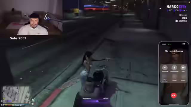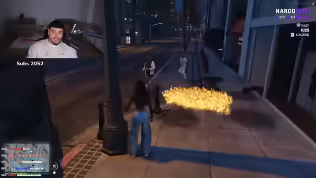 05:44:53Der Streamer und seine Begleiter suchen nach Leuten, um sie in eine Falle zu locken. Sie planen, eine Landmine zu platzieren, um ihre Opfer zu töten. Es kommt zu einer Verfolgungsjagd, bei der das Auto des Streamers beschädigt wird und er es nicht mehr bewegen kann. Er versucht, die Mine zu platzieren, während Jason die anderen in eine Parallelwelt schickt. Die Reifen des Autos brennen, und der Streamer fragt nach einem Medizinskasten. Er identifiziert eine Bewegung als „Sergio Ramos“ und fragt, ob es ein Emote dafür gibt. Eine Frau nimmt ihn mit in ein Rennen, das er als keine gute Idee betrachtet. Er will sie „heimaten“ und macht ein romantisches Armband. Er fragt, ob sie Feuer im Auto mag und ob er ihr Auto ausleihen darf. Die Frau stirbt, und der Streamer trifft auf Samira, die er fälschlicherweise für Valeria hält. Er versucht, sie zu verwirren und fordert sie auf, sein Auto zu klauen. Es kommt zu einem Streit, und der Streamer fragt, ob sie ein Date haben wollen und was sie beruflich macht. Samira arbeitet in einem Stripclub, was zu weiteren Diskussionen führt.