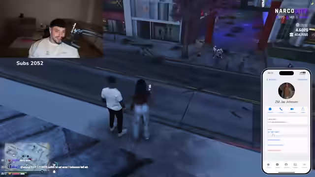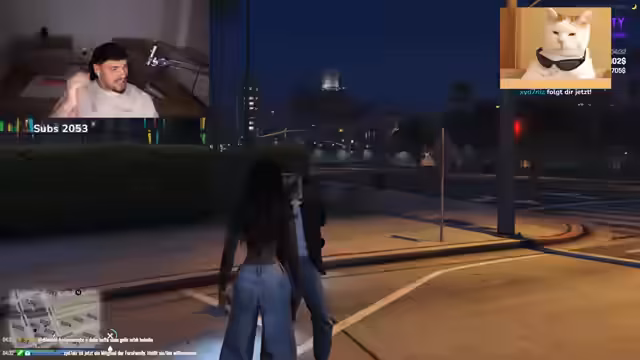 04:05:15Es kommt zu einem Flirtversuch mit einer Frau namens Samira, die nach ihrer Nummer gefragt wird. Es wird über den Preis für einen Lapdance verhandelt, wobei die Angebote von 2.000 bis 17.500 Dollar reichen. Die Situation ist spielerisch und provokativ. Gleichzeitig wird weiterhin über das Cat Café gesprochen und ob es noch Simon gehört. Die Gruppe beschließt, zum Orangenfeld zu fahren, da dort angeblich viel los ist. Die Suche nach Action und die Konfrontation mit den Gegnern bleiben im Fokus. Es wird überlegt, ob man die Frau entführen soll, um sie zu einem schicken Date einzuladen. Die Stimmung ist ausgelassen, und es wird versucht, die Langeweile des "toten Tages" zu vertreiben.