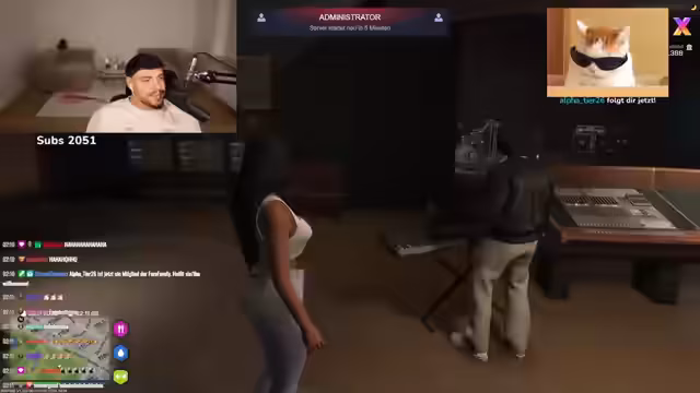 05:00:17Der Streamer inszeniert eine Szene, in der er die Kontrolle über das „Buch der Verdammten“ beansprucht und die Anwesenden auffordert, sich seinen Regeln zu unterwerfen. Er spricht davon, jemanden zu „prägen“ und seinen Schatten als Ausdruck seiner Seele zu präsentieren. Die Atmosphäre wird durch die Erwähnung von „Jason ist King“ und „Jason ist der P-König“ weiter angeheizt, was auf eine dominante und mächtige Rolle hindeutet. Es wird ein Auftrag erteilt, jemanden zu eliminieren, den der Streamer nicht mag. Die Szene wechselt schnell zu einer Diskussion über Frauenrechte, wobei die Frage aufgeworfen wird, ob Frauen aufgrund ihres Geschlechts weniger Rechte haben. Die Spannung steigt, als der Streamer ankündigt, dass jemand sterben wird, wenn er schnippt, was eine dramatische Wendung in der Erzählung darstellt und die Zuschauer in Atem hält.