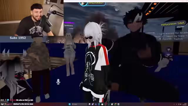 03:44:49Das Gespräch dreht sich um spezifische Erlebnisse im VR-Chat, wie das Betreten von Instanzen mit speziellen Namen wie 'Kartoffelbeet' und 'Tanzverbot'. Die Teilnehmer tauschen sich über ihre Erlebnisse mit bestimmten Avataren und Charakteren aus, die scheinbar eine große Fangemeinde haben. Valerias Anwesenheit in diesen Räumen wird thematisiert und es entstehen Missverständnisse über ihre Interaktionen mit anderen Personen innerhalb der virtuellen Welt, was zu Eifersucht und Klärungsbedarf führt.