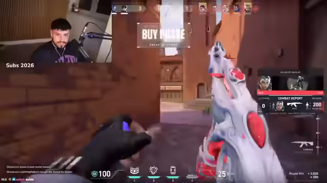 05:49:46Der Stream beginnt mit intensivem Gameplay in einem Shooter-Spiel, das vermutlich Valorant ist. Der Streamer versucht, sich strategisch zu positionieren, Gegner auszuschalten und seine Mitspieler zu unterstützen. Es gibt mehrere Auseinandersetzungen, bei denen er teilweise Erfolge feiert, teilweise aber auch frustriert über verpasste Chancen und schlechte Entscheidungen ist. Der Fokus liegt auf taktischen Manövern, wie dem Picken von Fähigkeiten und dem Verteidigen von strategisch wichtigen Positionen. Er kommentiert seine Aktionen live und diskutiert die Spielzüge mit seinen Mitspielern, wobei seine Stimmung zwischen Euphorie und Enttäuschung schwankt.