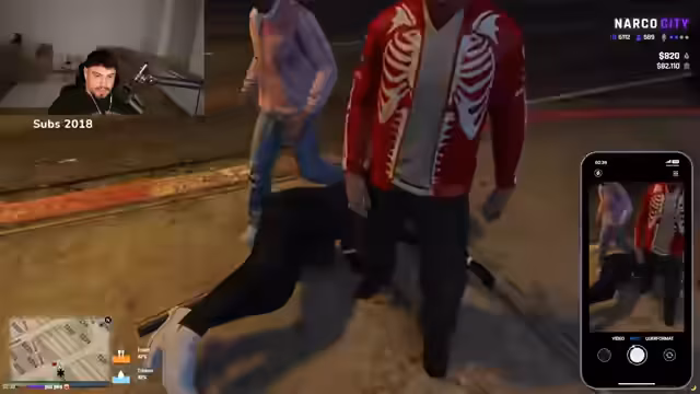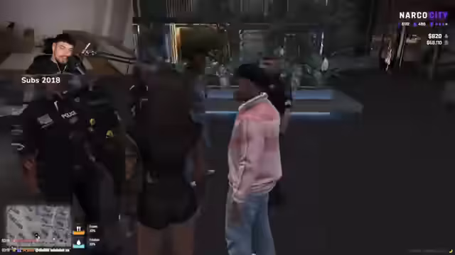 03:37:26Nachdem es im Polizeirevier zu einem Schusswechsel gekommen ist, flüchten die Streamer aus dem Gebäude. Während der Verfolgungsjagd werden sie mehrmals von der Polizei gestoppt und letztendlich festgenommen. Die Festnahme ist chaotisch und es kommt zu körperlichen Auseinandersetzungen. Die Streamer verlieren ihre Waffen und ihr Auto wird beschädigt.