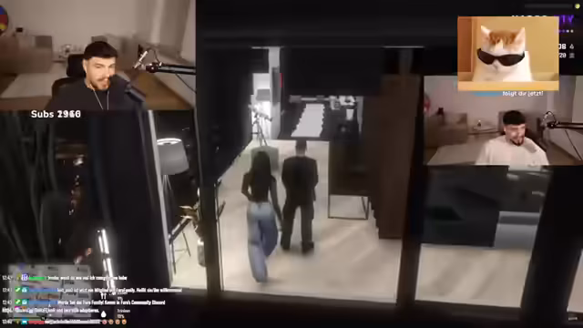 00:32:00Die Interaktionen nehmen eine immer absurdere Wendung, als der Streamer in seiner Rolle als 'Samira' und ihre angebliche Freundin 'Svetlana' (ebenfalls vom Streamer gespielt) mit einem polnischen und einem türkischen Mann sprechen. Es kommt zu Missverständnissen bezüglich eines vermeintlichen „Vierer-Dates“, das von den Männern als sexuelle Begegnung interpretiert wird, während Samira und Svetlana behaupten, ein einfaches Treffen gemeint zu haben. Die Situation eskaliert, als ein „Nachbar“ (wiederum der Streamer in einer anderen Rolle) auftaucht und absurde Forderungen stellt, wie das Leuchten in sein „Arschloch“ aufgrund von Hämorrhoiden. Dies führt zu einem Streit, in dem die Männer als „Ausländer“ beschimpft werden. Später taucht ein „Pizza-Lieferant“ auf, der die Pizza erst nach Stunden liefert und im Gegenzug sexuelle Gefälligkeiten fordert. Diese Szenen sind bewusst überzogen und dienen der Unterhaltung, indem sie absurde Konflikte und Missverständnisse erzeugen. Die weiblichen Charaktere präsentieren sich zudem mit einer Band namens „Orosbos“ und singen provokante Lieder, was die absurde und humorvolle Natur des Streams unterstreicht.