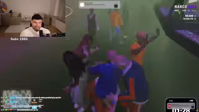 01:36:46Es wird über Kikas Arbeit und ihre familiäre Zugehörigkeit spekuliert, wobei der Streamer gespannt auf die weiteren Entwicklungen ist. Eine Person bietet an, alles zu erzählen, wenn sie etwas dafür bekommt, und es wird über Geld verhandelt. Der Streamer kommentiert humorvoll, wie man 'Patte macht' und sich nicht verarschen lässt. Die Szene wechselt zu einem Rollenspiel im Club, wo der Streamer und seine Begleitung feiern gehen. Sie betreten den Club, zahlen Eintritt und kommentieren die Preise und die Atmosphäre. Es kommt zu Interaktionen mit anderen Clubbesuchern, wobei humorvolle Dialoge und Flirtversuche im Vordergrund stehen. Der Streamer ist begeistert von der Stimmung und den Reaktionen der Leute. Es wird versucht, jemanden 'aufzugabeln', und es kommt zu weiteren spielerischen Gesprächen über Drogen und sexuelle Handlungen, die im Kontext des Rollenspiels stattfinden. Die Szene wird von einem plötzlichen Abbruch des Streams unterbrochen, was zu Spekulationen führt, ob es ein Kick war oder der Streamer sich selbst ausgeloggt hat. Nach der Rückkehr wird das Gespräch über die sexuellen Handlungen fortgesetzt, wobei Unsicherheit über die Regeln im Spiel besteht. Es wird versucht, über einen Discord-Kanal Informationen zu erhalten, um die Grenzen des Erlaubten zu klären. Die Szene endet mit einem plötzlichen Überfall auf die Wohnung des Streamers, was zu Chaos und weiteren humorvollen Dialogen führt.