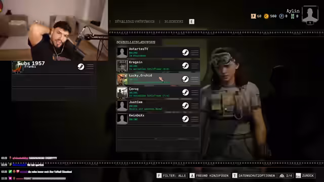 05:01:13Während des Horrorspiels wird der Streamer von einem Freund auf Discord kontaktiert, der fragt, was er gerade macht. Es stellt sich heraus, dass der Streamer "Outlast" spielt, was fälschlicherweise mit "The Last of Us" verwechselt wird. Der Streamer möchte seine Freunde in die Discord-Party einladen, aber eine Freundin namens Asti lehnt ab. Die Spieler suchen weiterhin nach der Kirche und finden schließlich die "Bleiche". Die Spannung bleibt hoch, da sie von einem "verliebten" Typen verfolgt werden und versuchen, zu entkommen. Es wird auch über die Schwierigkeit des Spiels gesprochen und wie schnell die Gegner sind. Der Streamer und seine Freunde versuchen, die verschiedenen Bereiche der Karte zu identifizieren, um ihre Ziele zu erreichen.