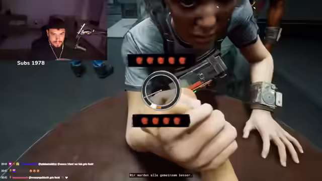 03:20:15Der Streamer und seine Mitspieler starten eine neue Runde des Horrorspiels, wobei zunächst Verwirrung über die Teamzusammensetzung herrscht. Einer der Spieler muss das Spiel noch installieren, während die anderen bereits die erste Aufgabe in einer Umgebung, die an eine Autobahn erinnert, angehen. Schnell stoßen sie auf eine tote Person und müssen deren Batterie entnehmen, um fortzufahren. Die Atmosphäre wird zunehmend gruseliger, als sie auf eine sich bewegende Leiche stoßen und der Streamer von einer beängstigenden Erfahrung berichtet, die er bereits zuvor im Spiel hatte. Die Gruppe wird von einer Kreatur gejagt, was zu panischen Reaktionen und der Suche nach Verstecken führt. Ein Anruf während des Spiels wird kurz gehalten, um sich auf das Spiel konzentrieren zu können. Sie entdecken eine verstörende Puppe, die in eine Wand gesteckt wurde, was die gruselige Stimmung weiter verstärkt. Plötzlich taucht ein Klon des Streamers mit einem Messer auf, was die Gruppe zur Flucht zwingt und die Suche nach Abwehrmitteln intensiviert.