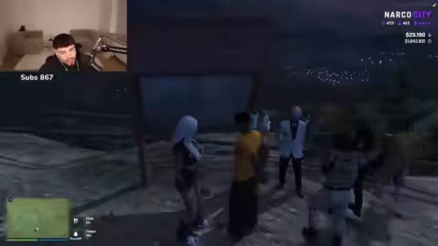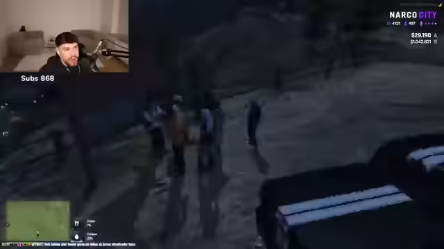 01:46:47Als der Plan zum Bankraub konkret wird, taucht ein Nutzer namens 'Jersey' auf, der für das Scheitern des Plans verantwortlich gemacht wird. Der Streamer beschuldigt 'Jersey', ihn und andere drei Stunden hat warten zu lassen und dann einfach eingeschlafen zu sein, was zu großer Wut und Beschimpfungen führt. Trotzdem oder gerade deshalb wird der Raubzug fortgesetzt. Es kommt zu chaotischen Szenen, in denen die Teilnehmer 'Winters' als Geisel nehmen und sich mit der Polizei anlegen, während sie flüchten. Die Verhandlungen mit der Polizei sind geprägt von Forderungen nach Autos und Waffen.