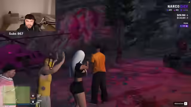 03:29:37In der virtuellen Welt von GTA interagiert der Streamer mit anderen Spielern. Es kommt zu einer angespannten Situation, in der eine Frau festgehalten wird, um ihre Identität zu klären. Die Situation eskaliert verbal, als der Streamer die Frau mit Waffengewalt bedroht, um ihr ein Geständnis oder eine Verpflichtung abzuringen. Dabei werden persönliche Informationen wie der Name und die Beziehungen der Spielfigur ausgeforscht.