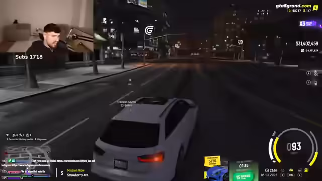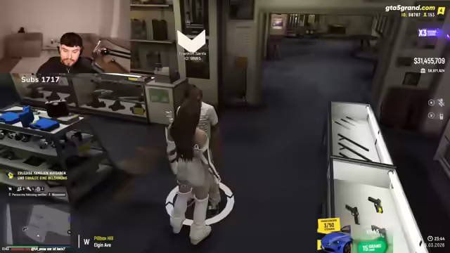 01:32:28Nach dem turbulenten Ende mit Darko und der Konfrontation startet der Streamer eine neue Interaktion mit einem männlichen Charakter namens Franklin. Beide stellen sich vor und es entwickelt sich eine neue Dynamik. Franklin berichtet, er sei aus dem Gefängnis gekommen. Gemeinsam besorgen sie sich Waffen, um sich auszustatten, was den Beginn eines neuen Kapitels im Rollenspiel einläutet.