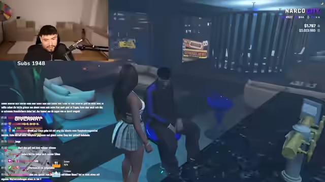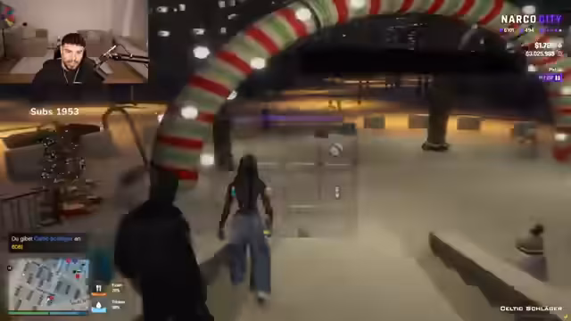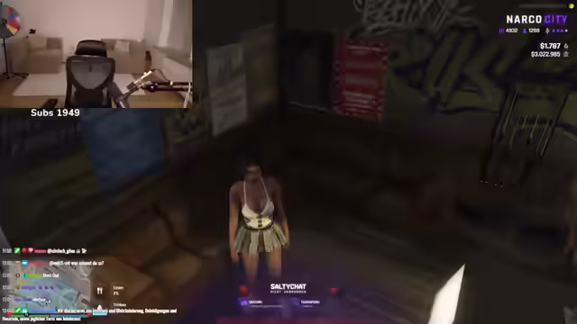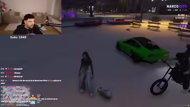 00:00:32Zu Streambeginn werden die Chatbesucher aktiv nach weiteren Neulingen in Narco City gefragt. Ein Chatter namens Luca ist anwesend, der nach eigenen Angaben erst seit gestern in der Stadt ist. Die Streamerin gibt allgemeine Tipps für Neulinge, wie sie die Grundregeln durchlesen sollten, um sich sicher zu fühlen, und erwähnt die hohe Wahrscheinlichkeit, eine Familie oder Gruppe zu finden.