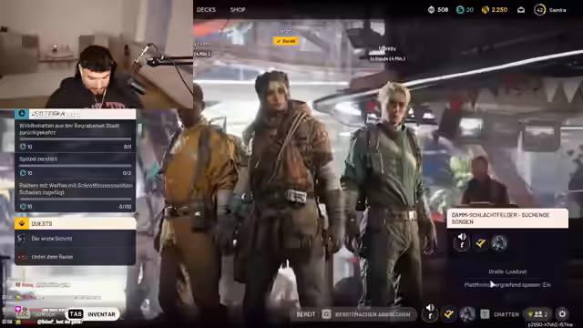 06:41:05Die Spieler besprechen ihre Strategie für den Kampf in 'Arc Raiders', wobei die Wichtigkeit einer starken Waffe wie der Diegel und ausreichender Heilung betont wird. Sie entscheiden sich, zum Control-Punkt zu gehen, der als der am meisten umkämpfte Ort gilt. Es wird die Größe der Karte und die verschiedenen Spawn-Punkte diskutiert, sowie die Existenz von vier bis fünf verschiedenen Maps. Die geringe Dateigröße des Spiels im Vergleich zu anderen Titeln wird als erstaunlich empfunden. Während des Spiels wird ein Glitch oder Bug erwähnt, den die Spieler nutzen wollen. Die Ausdauer des Charakters wird thematisiert, und es wird festgestellt, dass sie durch Skill-Punkte beeinflusst wird. Die Spieler entdecken wertvolle Gegenstände zum Verkaufen und diskutieren über die Helligkeit des Spiels sowie die Bedeutung verschiedener Loot-Items. Ein Spieler findet ein episches Mixtape, das 10.000 Ingame-Währung wert ist, und ein Unterhaltungsband für das Haustier. Die Schatten im Spiel werden als zu dunkel empfunden, und es wird überlegt, die Helligkeit anzupassen. Die Spieler achten auf ihr Inventargewicht und bereiten sich auf mögliche Kämpfe vor.
