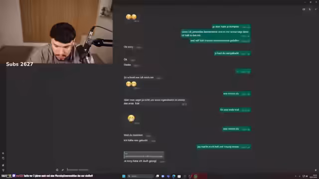 03:51:26Der Streamer wählt zufällig einen Chat-Partner aus einem anonymen Chat-Dienst aus. Das Gespräch beginnt harmlos, entwickelt sich jedoch schnell zu einer Konfrontation. Die Streamerin, die sich als 22-jährige Hamburgerin ausgibt, wird vom Streamer auf ihr Verhalten und ihre Geheimnisse hingewiesen. Es kommt zu einem Disput über Ehrlichkeit, bei dem der Streamer ihr vorwirft, ihn angelogen zu haben, indem sie ihr Alter und andere persönliche Details vorsätzlich falsch angibt, um ihn zu testen.