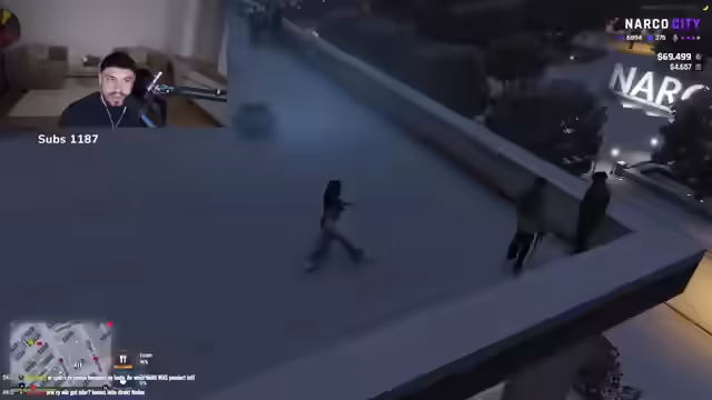 03:39:42Der Streamer trifft auf Samira, die als neue Tänzerin in der Stadt arbeitet. Sie erkunden gemeinsam einen Nachtclub, geben vor, neu hier zu sein, und beginnen ein Rollenspiel als Fotograf und Modell. Samira erwähnt ihre bosnische Herkunft und berufliche Pläne, während der Club erkundet wird.