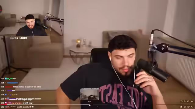 01:42:11Samira wird von ihrem Nachbarn Stefan unterbrochen, der spät in der Nacht bei ihr klingelt. Es entwickelt sich eine unangenehme Situation, in der Stefan anbietet, Geld zu zahlen, um bei einem intimen Moment dabei zu sein. Der Streamer und Luca diskutieren die moralischen Grenzen und lehnen das Angebot ab. Stefan verlässt schließlich die Wohnung, nachdem er auf Widerstand stößt. Die Szene zeigt die unerwartete Dynamik und die Notwendigkeit, Grenzen in solchen Situationen zu setzen.