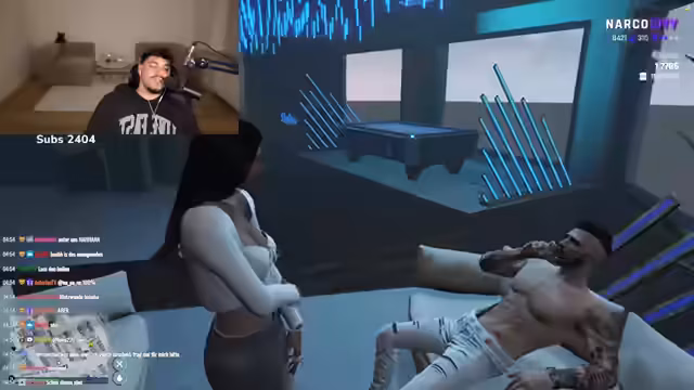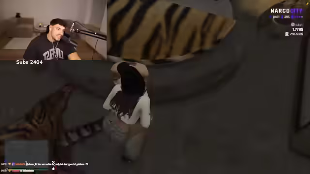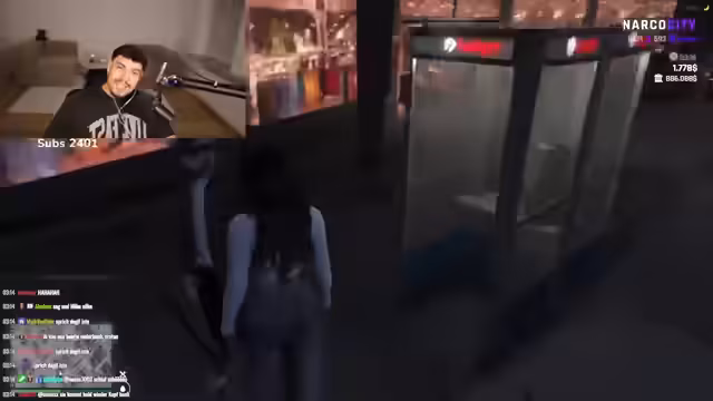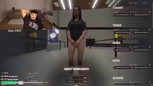 05:30:28Die Streamerin beginnt ein Rollenspiel (RP), bei dem sie versucht, mit Hilfe eines Chatters in einen fiktiven Server namens NRW einzureisen. Nach technischen Schwierigkeiten und Anleitungen des Chatters erstellt sie einen Charakter. Ein Beamter der fiktiven Einbehörde nimmt die Anmelde- und Charaktererstellung vor, wobei Details wie Herkunft, Beruf und Familienstand erfragt und ein RP-Szenario inszeniert wird.