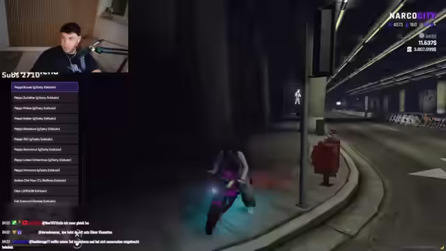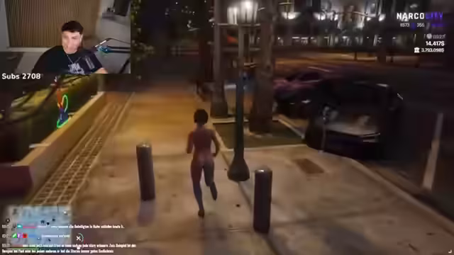 03:44:12Der Streamer erklärt den neuen Zuschauern das Konzept eines Rollenspiel-Servers in GTA Online. Jeder Spieler übernimmt eine Rolle und muss sich an die Regeln halten. Anschließend beginnt der Streamer die interaktive Rolle einer Stripperin namens Valeria González, die einen Kunden anspricht und ihm Dienstleistungen anbietet. Die Interaktion ist von Dominanz und Forderungen nach Geld geprägt.