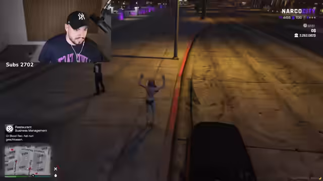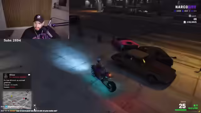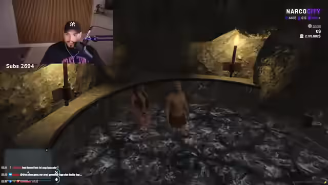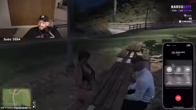 01:20:00Die Streamerin berichtet von vergangenen Abenteuer in 'Narcos City', wo sie Drogen von einer fiktiven Person namens Jimmy Blue gekauft haben soll. Es wird eine Wette für die Zuschauer gestartet. Die Situation wird immer unübersichtlicher, bis zu einem Punkt, an dem sie mit einem vermeintlichen Dealer, dem 'Boss', über Geschäfte und Wetten spricht und versucht, diesen zu bestechen.