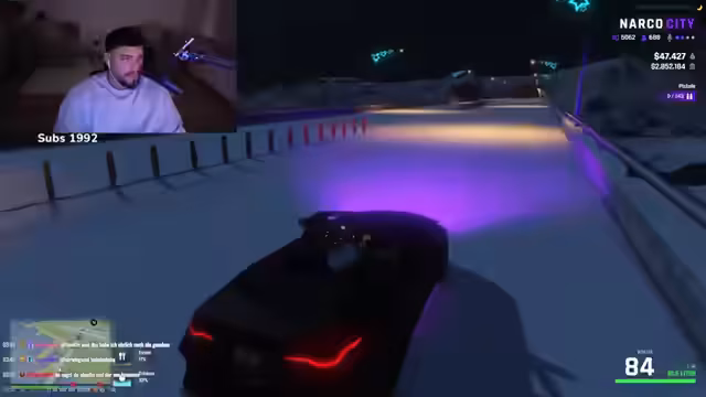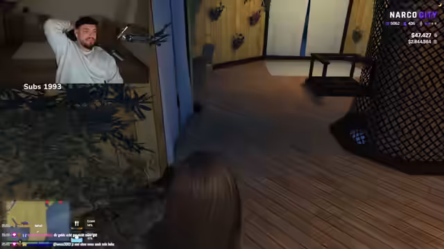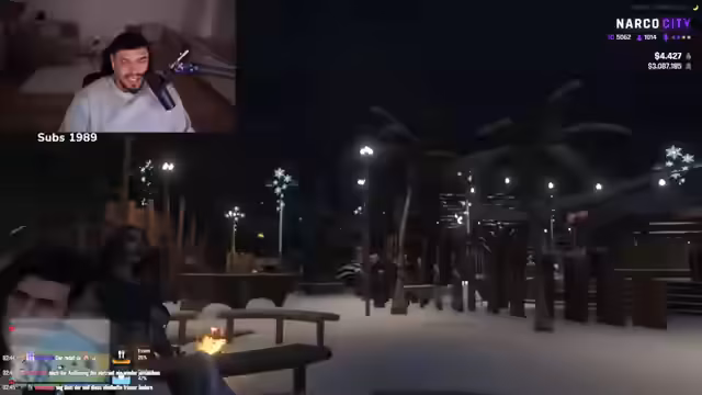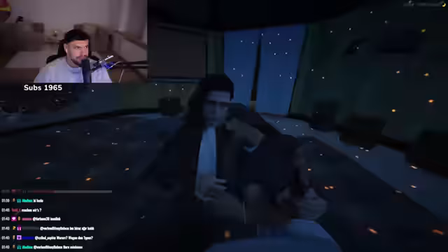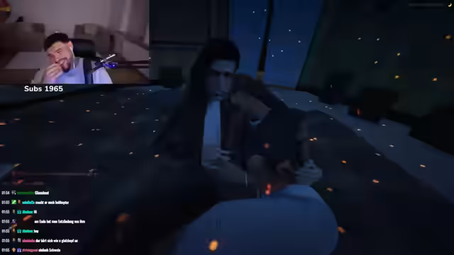 00:37:37Nach technischen Problemen mit dem Spiel Narcos City wechselt der Streamer zu GTA 5 und startet ein 'Date' mit einer Zuschauerin namens Samira. Es entsteht eine romantische Atmosphäre, in der die beiden in einem Baumhaus auf einem Berg auf San Andreas verweilen. Sie unterhalten sich über Körpertemperatur, Schüchternheit und offenheit für neue Erlebnisse und küssen sich.
