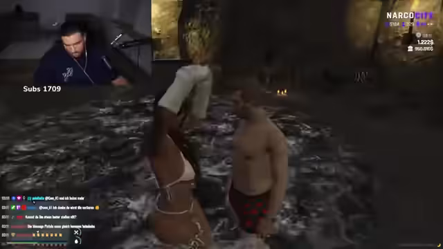 03:33:26Im weiteren Verlauf des Rollenspiels wird die Dominanz- und Unterwerfungs-Dynamik fortgesetzt. Der Streamer fordert 'Samira' auf, sich auf die Knie zu legen und seine 'Pisse' zu trinken, was jedoch später als Alkohol entlarvt wird. Es kommt zu einem eifersüchtigen Disput, in dem der Streamer sich fragt, ob er der einzige Mann im Leben seiner virtuellen Partnerin ist. Das Gespräch endet abrupt, als die Person hinter 'Samira' sich vom Stream zurückzieht.