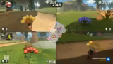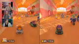 01:14:46Ein Rennen zu dritt beginnt, bei dem Holger vorfährt und die anderen um 'Krümel' konkurrieren. Nach einigen technischen Anpassungen, wie der Auswahl von Fahrhilfen und der Bewegungssteuerung, werden die Charaktere gewählt - eine Kuh und ein Hase. Das Rennen startet auf 150 cc mit viel Action. Die Steuerung wird erklärt: Gas, Drift mit Schultertaste, Bremsen und das Problem mit der Kameraanzeige wird angesprochen. Es ist merkwürdig, dass die Anzeige klein statt groß ist.