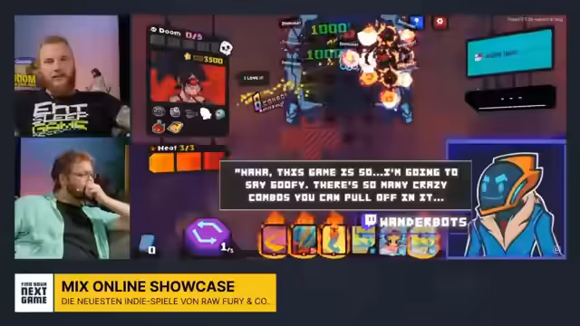 03:10:00Der Stream wechselt zur Präsentation der Mix Online Showcase, ehemals bekannt als Guerilla Collective. Die Erwartungen werden heruntergeschraubt, da es sich hierbei eher um eine Zusammenstellung von kleineren Indie-Spielen als um Blockbuster-Präsentationen handelt. Es wurden Trailer für Titel wie 'Last Caretaker', ein Weltraum-Survival-Spiel, und 'Spindle', ein Spiel mit einem Sensenmann-Reiter auf einem Schwein, gezeigt. Die große Herausforderung dieser Show liegt darin, sich in einer Masse von Retro-Pixel- und Retro-Spielen abzuheben und sich als potentieller Rohdiamant zu etablieren.