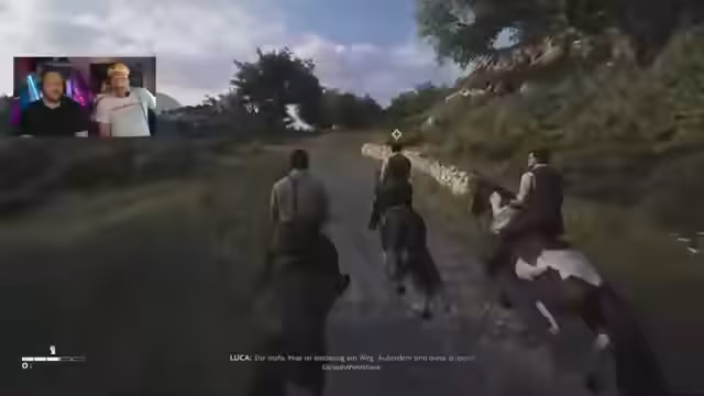 00:12:38Die Moderatoren wechseln zu Mafia: The Old Country und betonen den atemberaubenden optischen Anspruch des Spiels, insbesondere auf dem PC. Sie beschreiben die lebendige mediterrane Welt mit intensiven Farben und vielen Details als wahren 'Urlaub für die Augen'. Die Streamer spielen bereits das 10. von 15 Kapiteln und konzentrieren sich auf repräsentative Abschnitte mit Reit-, Auto- und Schießereisequenzen. Sie heben die starke Atmosphäre und das sorgfältige Leveldesign hervor, merken aber auch kleinere technische Schwächen wie Ladeprobleme und Pop-ins bei Texturen an.