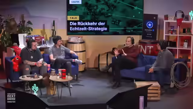 01:53:32Nach einer Pause beginnt der Strategie-Talk. Moderiert wird das Gespräch vom Streamer mit Maurice und Heiko. Als Gäste eingeladen sind Leon, Experte für Bonchwa, und eine weitere Person, die sich mit Burgen und Belagerungen auskennt. Leon berichtet von seinen Erfahrungen mit neueren Echtzeitstrategie-Spielen und betont die Wichtigkeit einer guten Singleplayer-Kampagne, um neue Spieler zu gewinnen. Maurice ergänzt, dass das Genre zwar Schattendasein fristet, aber durch Remaster wie Age of Empires 2 weiterhin eine treue Community hat.