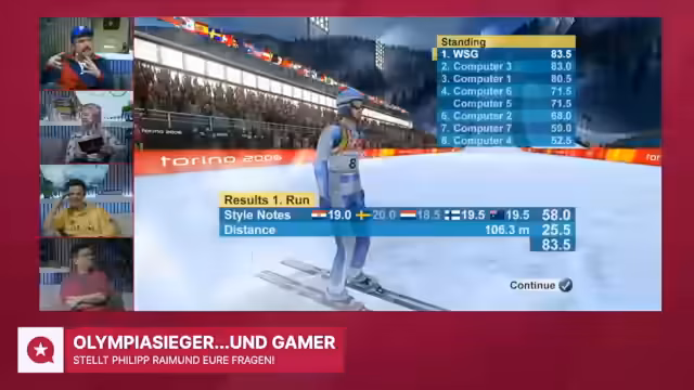 00:16:38Der GameStar Talk begrüßt den Olympiasieger Philipp Raimund im Studio. Raimund, studierter Game Designer und passionierter Anime-Fan, ist der Ehrengast des Streams. Er wird als fünfter Deutscher überhaupt Olympiasieger im Skispringen auf der Normalschanze und ist sichtlich erfreut über die Einladung, über seine Liebe zu Gaming und Sport sprechen zu dürfen. Neben dem Streamer sind Heiko und Felix im Studio, die ebenfalls große Olympia-Fans sind.