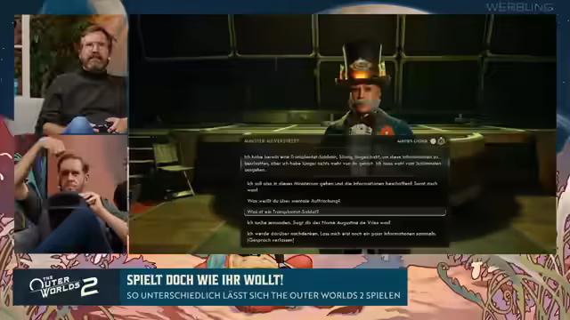 02:27:30Nach dem Quiz werden die Release-Details für The Outer Worlds 2 bekannt gegeben. Das Spiel erscheint am 29. Oktober für Xbox, PlayStation und PC und wird direkt in den Game Pass aufgenommen. Als Play Anywhere-Titel ermöglicht es einen nahtlosen Wechsel zwischen Geräten mit Cloud-Speicherung der Spielstände. Die Moderatoren kündigen an, zwei unterschiedliche Playthroughs des Prologs zu zeigen, um die Vielfalt der Charakterentwicklung und Lösungsansätze zu demonstrieren.