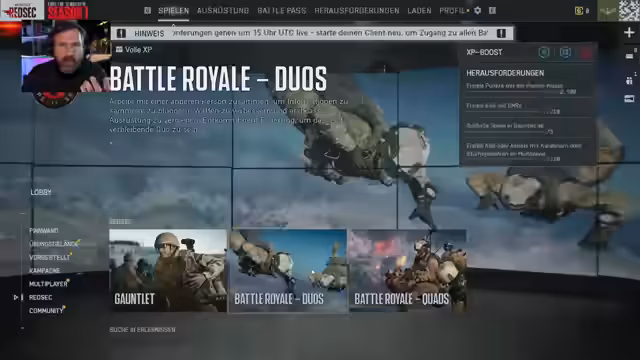 Es wurde eine Testrunde mit Battlefield 6 gestartet. Nach einem erfolglosen Versuch im Duos-Modus wurde der Wechsel zu Quads vollzogen. Dies brachte bessere Ergebnisse, mit einem abschließenden zweiten Platz. Der Start des Spiels wurde als stabil bewertet.