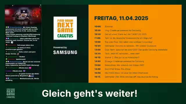 02:14:52Ein Höhepunkt des Streams ist die Vorstellung der Nominierten für den Find Your Next Game Indie Award. Spiele wie 'Let Them Trade', 'Net Attack' und 'Mirana and the Cube Walker' werden vorgestellt. Daneben gibt es mehrere Gewinnspiele, bei denen die Community die Chance hat, Preise wie Samsung-Monitore, SSDs oder Smartphones zu gewinnen. Die Teilnahme erfolgt oft durch einfache Aktionen, was die Beteiligung im Chat fördert.