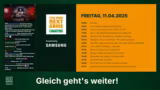 00:18:26Das Gespräch konzentriert sich auf die vielfältigen Programmpunkte, die die Zuschucher erwarten. Ein besonderes Highlight ist eine geheimnisvolle Jagd durch die Messe, die am nächsten Tag stattfinden wird. Für den heutigen Tag steht die große Fin-Show im Fokus, die als World-Premiere angekündigt wird und neue Spiele präsentieren wird. Des Weiteren wird ein apokalyptischer Talk über den Stand der deutschen Games-Branche angekündigt, bei dem aus verschiedenen Branchenlagern geladene Entwickler teilnehmen werden. Ein Messe-Rundgang und das Spiel 'Top oder Flop' werden ebenfalls als Programmpunkte erwähnt.