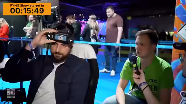 05:48:08Der Streamer führt die Zuschauer durch die Entertainment Area der Messe und zeigt verschiedene Attraktionen. Dazu gehören eine Cosplay-Stage und -Area, Retro-Spiele wie Mario Kart 64, ein Stand mit Brettspielen vom Spielraum e.V. sowie ein Ausblick auf die anstehende "Find Your Next Game Show". Dabei werden die Besucher aktiv zur Interaktion aufgerufen.