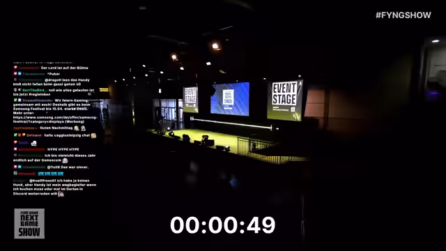 06:09:53Der Streamer erreicht die Event-Stage, wo nun die Hauptveranstaltung des Tages beginnt: die 'Find Your Next Game Show'. Moderiert von Ann-Kathrin Kohls und Maurice Weber, verspricht die Show einen Abend voller Spannung und Spaß mit der Präsentation zahlreicher neuer Spiele, darunter Weltpremieren, die nirgendwo anders zu sehen sind. Die Moderatoren betonen, wie wichtig das Dranbleiben ist, da besonders die größte Ankündigung zum Schluss geplant ist.