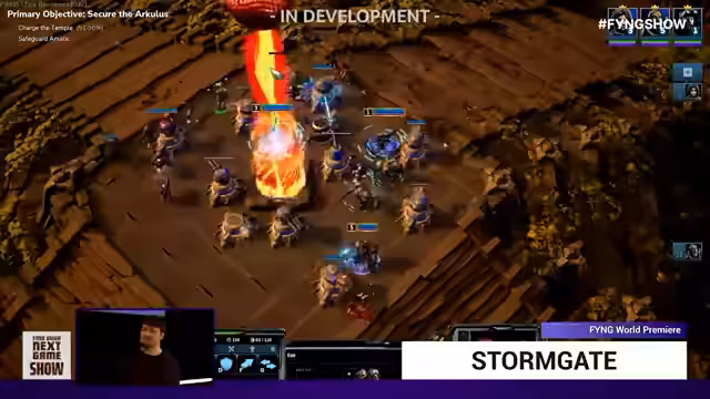 08:15:18Nach 'C-Beams' werden zwei weitere Sci-Fi-Spiele präsentiert. 'Star Rupture' ist ein Survival-Spiel im Stil von Satisfactory, in dem komplexe Basen gebaut und Ressourcen im Weltall abgebaut werden müssen. Das Koop-Spiel für bis zu vier Spieler hat auch eine Story mit Überresten vergangener Zivilisationen. Als zweites Spiel wird 'Stormgate' mit einer komplett überarbeiteten Kampagne vorgestellt, die düsterer ist und neue Einheiten sowie einen Raumschiff-Hub als Missionssitz enthält.