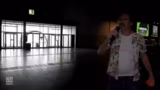 00:58:04Nachdem die Halle 3 erkundet wurde, begeben sich die Moderatoren zur separaten Event-Stage, an der die große Fin-Show stattfinden wird. Sie zeigen den umbauten Bereich mit Tribünen und beschreiben die Show als ein aufwändiges Spektakel, das weit über das normale Maß eines Messestandes hinausgeht. Die Moderatoren kündigen an, dass viele Spiele und Weltpremieren auf dieser Bühne gezeigt werden und laden die Zuschauer herzlich ein, dieses Event nicht zu verpassen.
