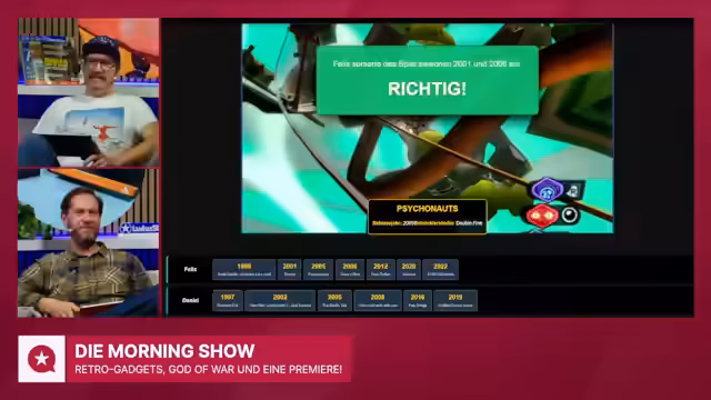 01:41:09Ein Live-Spieltest wird mit zwei Teilnehmern durchgeführt, um das neue Spielformat zu demonstrieren. Die Spieler erhalten jeweils Screenshot-Ausschnitte von Spielen und müssen diese basierend auf einem vorgegebenen Spieltitel und Erscheinungsjahr in eine gemeinsame Timeline platzieren. Das Spiel ist als Prototyp noch in der Entwicklung, die Metadaten der Spiele werden jedoch bereits angezeigt und werden Teil des finalen Formats sein.