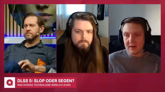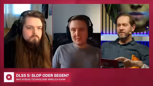 00:09:07Der Stream beginnt mit einer Begrüßung aus dem GameStar-Studio und der Ankündigung, das ursprüngliche Programm zu verlängern, um über das hochgekochte Thema Nvidia DLSS 5 zu sprechen. Moderatoren und Tech-Redakteure Jan und Nils begrüßen das Publikum und stellen das immense Ausmaß der Kontroverse in den Raum. Nvidia präsentiert die Technologie als revolutionärsten Sprung seit Raytracing, doch das Netz reagiert mit massiver Kritik und Häme. Begriffe wie KI-Slop und Disgrace statt Grace kursieren, und es werden Bedenken geäußert, dass Spiele in Zukunft wie schlecht generierte KI-Bilder aussehen könnten, die kreative Freiheit der Entwickler verloren gehe und der hohe Kostenpunkt unklar sei.
