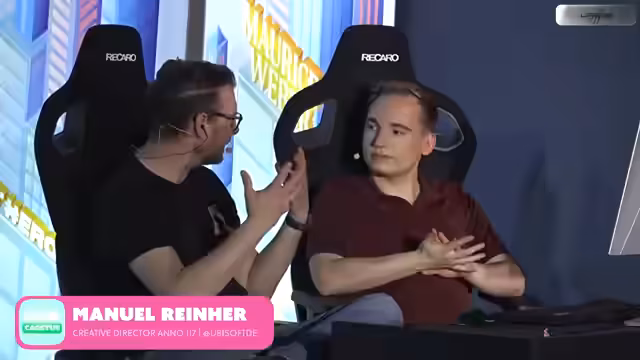 03:08:02Der Stream beginnt mit einem spielerischen Moment, bei dem Lea versucht, eine bestimmte Zeit von 6,28 Sekunden zu schlagen, jedoch mit 10,21 Sekunden scheitert. Anschließend wechselt der Fokus zum neuen DLC Anno 117, dessen Creative Director Manu zu Gast ist. Die Hauptattraktion ist die riesige Insel Cini, die größte Insel in einem Anno-Spiel, die den Wunsch der Spieler nach mehr Platz und weniger Barrieren erfüllt. Manu erklärt, dass das Team versucht hat, einen Mix aus großen Ebenenflächen und randständigeren Herausforderungen zu gestalten, um sowohl Platz zum Bauen als auch spielerische Abwechslung zu bieten.