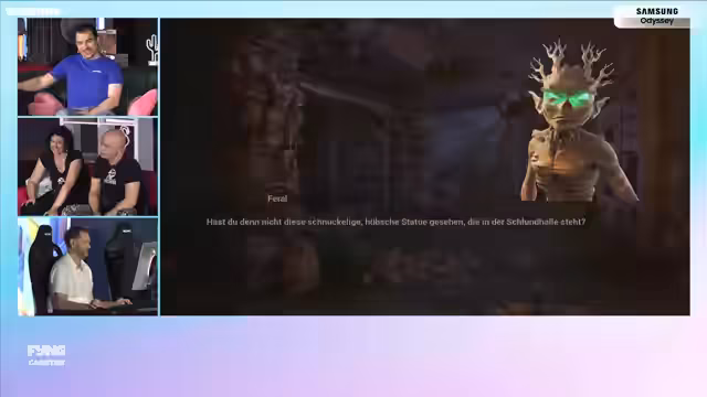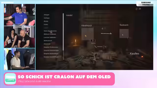 05:03:34Das Spiel wurde seit gestern auf Steam für 20 Euro veröffentlicht und es gibt auch eine Demo. Die Streamer bedanken sich bei den Entwicklern Björn und Jenny für die Vorstellung auf der Show. Kurz darauf wird zu einem weiteren Eventbereich gewechselt, wo ein Samsung-Bällebad für eine Challenge mit attraktiven Preisen präsentiert wird.