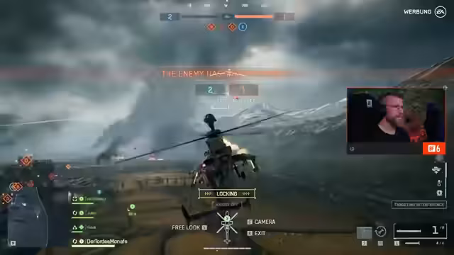 02:35:10Nach den Conquest-Schlachten wechseln die Streamer zu dem neuen Modus 'Eskalation'. Zuerst gibt es technische Verwirrung über die Steuerung von Jets. Sie beschreiben den Modus als eine Mischung aus Eroberung und Battle Royale, bei dem die Map kleiner und die Anzahl der Flaggen reduziert wird. Im Spiel versuchen sie, mit einem Helikopter die Kontrolle zu sichern, stoßen aber auf starke gegnerische Flakabwehr und koordinierte Angriffe, die den Kampf spannend und herausfordernd gestalten.
