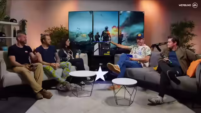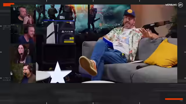 00:12:19Der Stream beginnt mit der herzlichen Begrüßung der Zuschauer und der Vorstellung der Gäste im Studio, darunter Fabian, Jules, Chiara und Marco. Der Sprecher betont die persönliche Verbindung zur Battlefield-Serie und zur GameStar-Redaktion. Er erinnert sich an gemeinsame Vergangenheit bei GIGA und der BPJM und stellt die anstehenden Inhalte vor: die Singleplayer-Kampagne, den Multiplayer-Modus sowie die Verlosung von fünf PlayStation 5 Pro-Bundles.